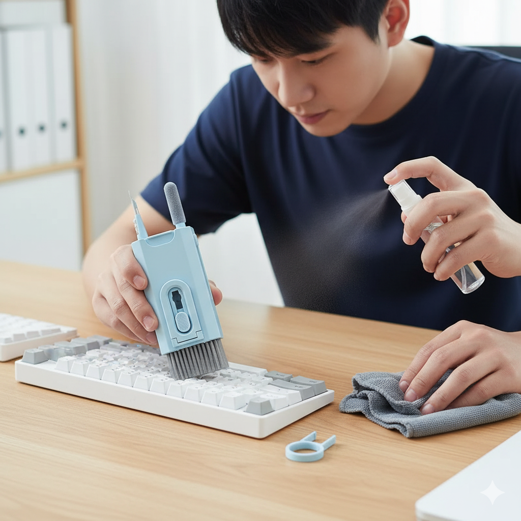 This little cleaner kit is honestly amazing. I use it for my laptop, keyboard, and AirPods — it reaches every small corner! The spray works great, and the materials feel high quality.